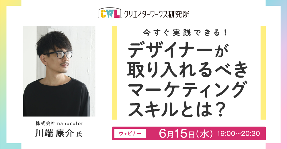 【6/15(水)ウェビナー】nanocolor川端康介氏登壇!今すぐ実践できる!デザイナーが取り入れるべきマーケティングスキルとは?│参加無料│クリエイターワークス研究所