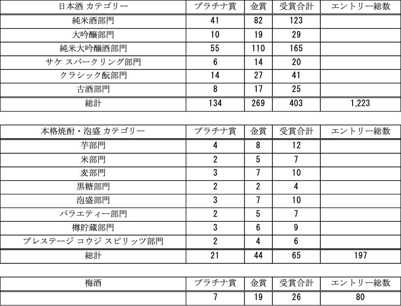 ※受賞酒詳細、審査員経歴詳細については公式HPを参照ください。