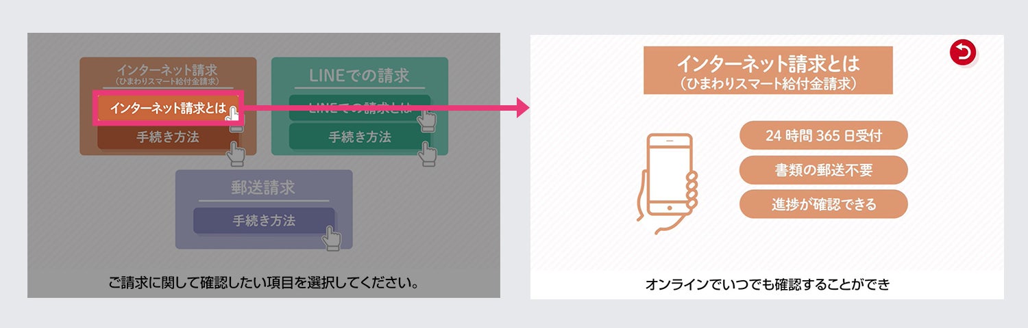 SOMPOひまわり生命は、世界で最進・最優の生命保険会社を目指し、積極的にデジタル技術の活用を推進しています。業務プロセスの改善をミッションとしている事務改革推進部では、お客さまの利便性を高めるためにマイページ・LINE・郵送という3種類の給付金請求の方法をご用意しているものの、マイページとLINE経由の手続きがなかなか浸透しないという課題を抱えていました。「インターネット経由の手続きのメリット」や「保険金請求に付随する複雑な条件・専門用語」などを分かりやすく表現する手段として、新しいデジタル技術の活用を検討していました。