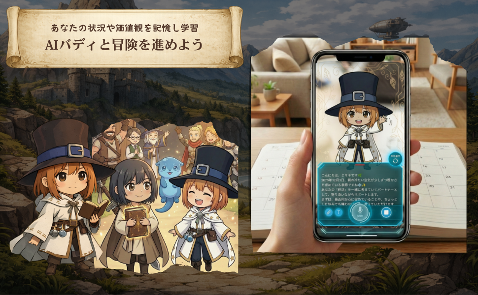 AIバディは対話を重ねるごとに読者の価値観を学習し、終生のパートナーとして成長していきます。