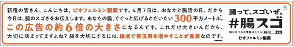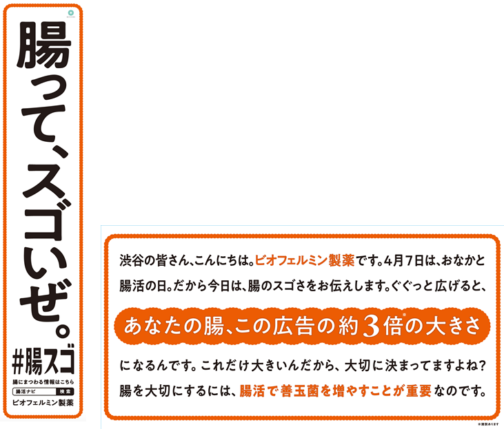 - 「おなかと腸活の日」にちなみ、渋谷・新宿・梅田に巨大看板広告が登場!