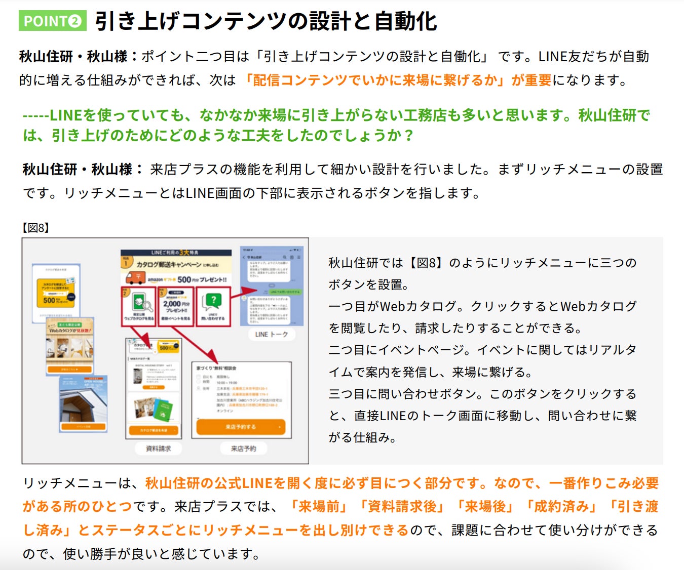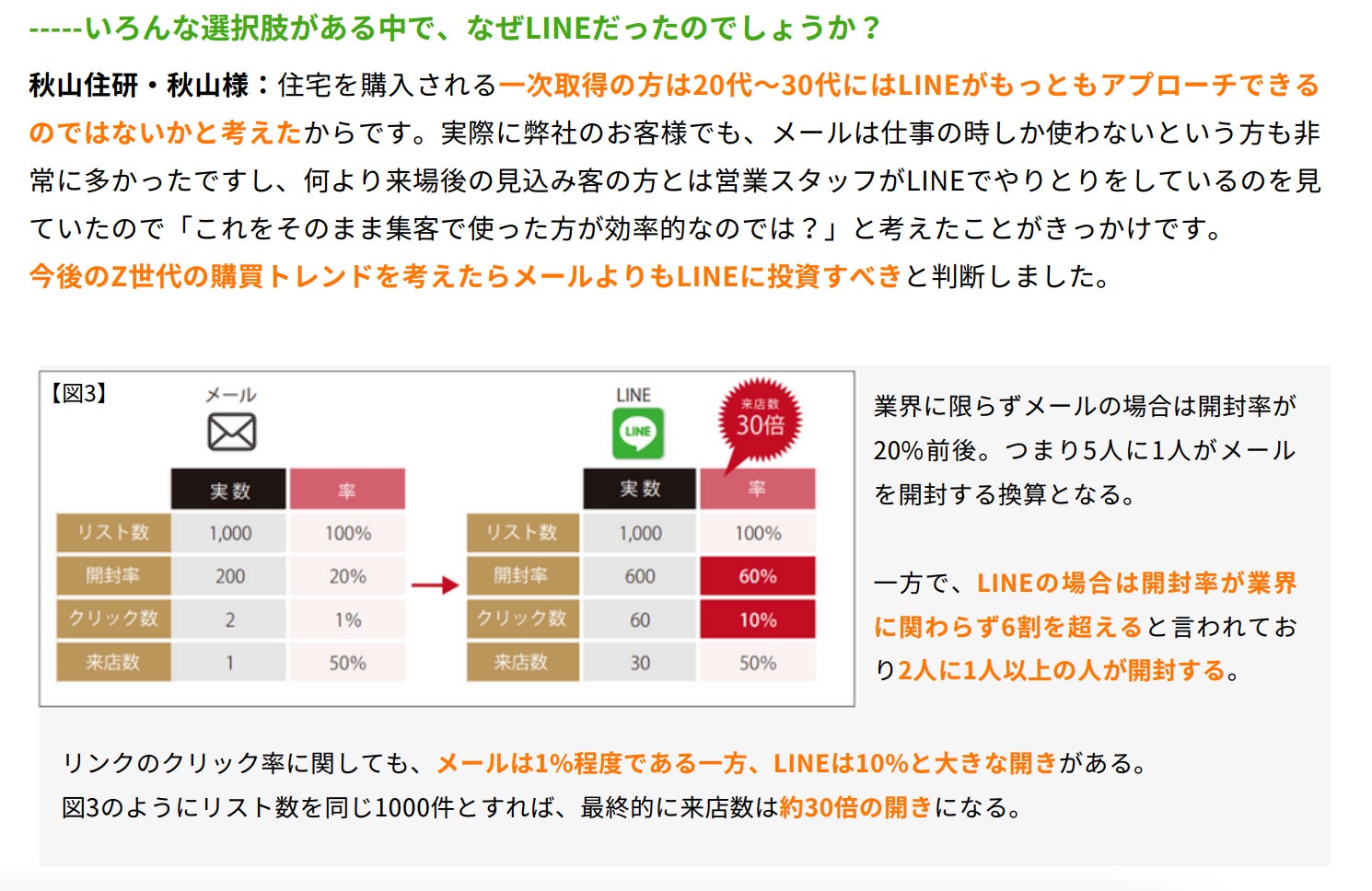 住宅・不動産業界向けLINE運用ツール『来店プラス』、毎月反響50件『秋山住研の集客成功事例レポート』を大公開