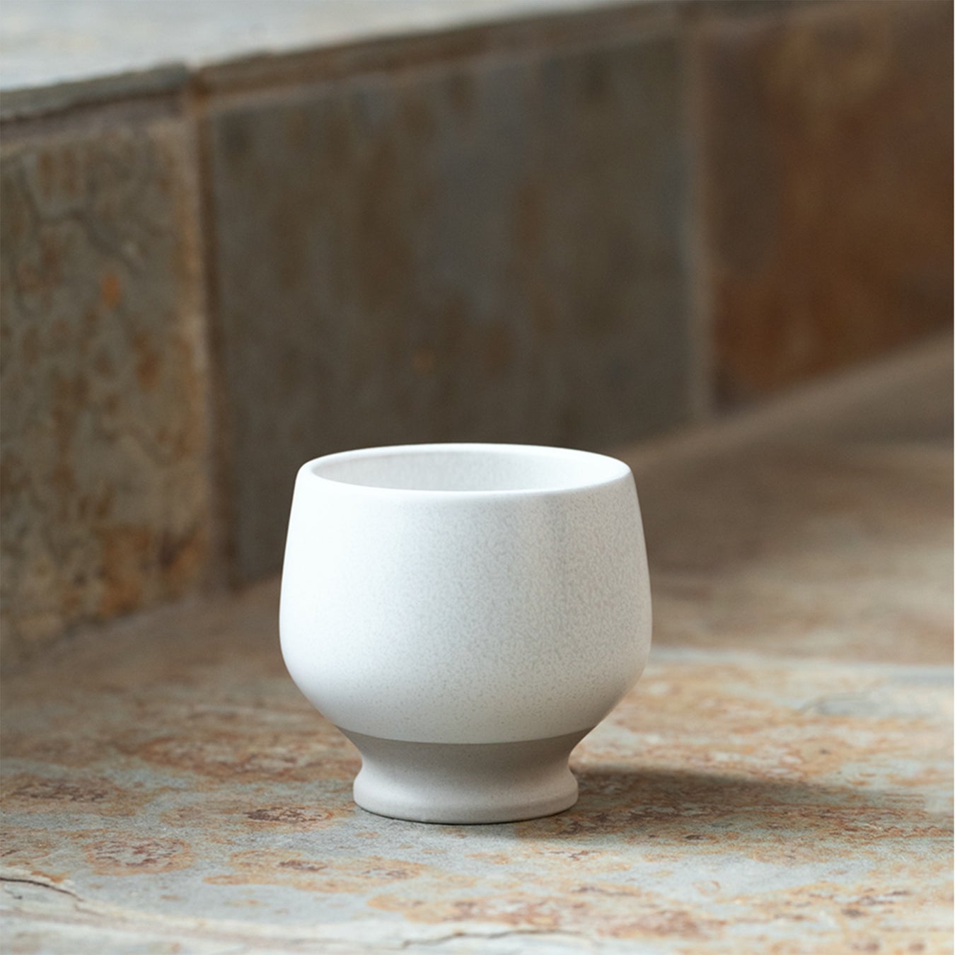 やや厚みのあるフォルムと、ほどよく閉じた口径を持つこのカップは、注がれたお茶の熱をしっかり保ち、あたたかさがじんわりと続くよう設計されています。