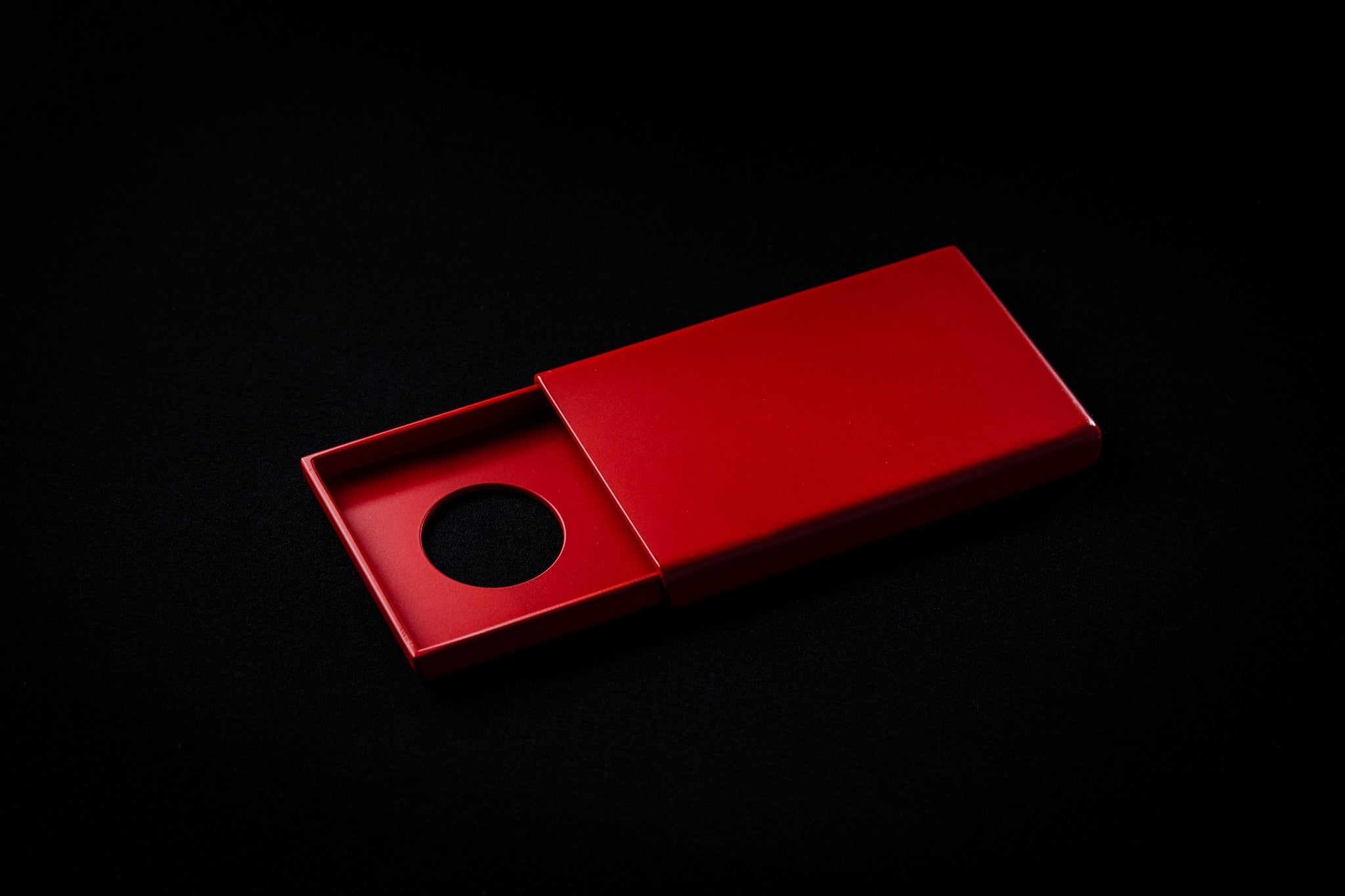 Slide:刀を抜く動作を触感でイメージし、渋みのあるマットな朱漆を全面に塗ることで
