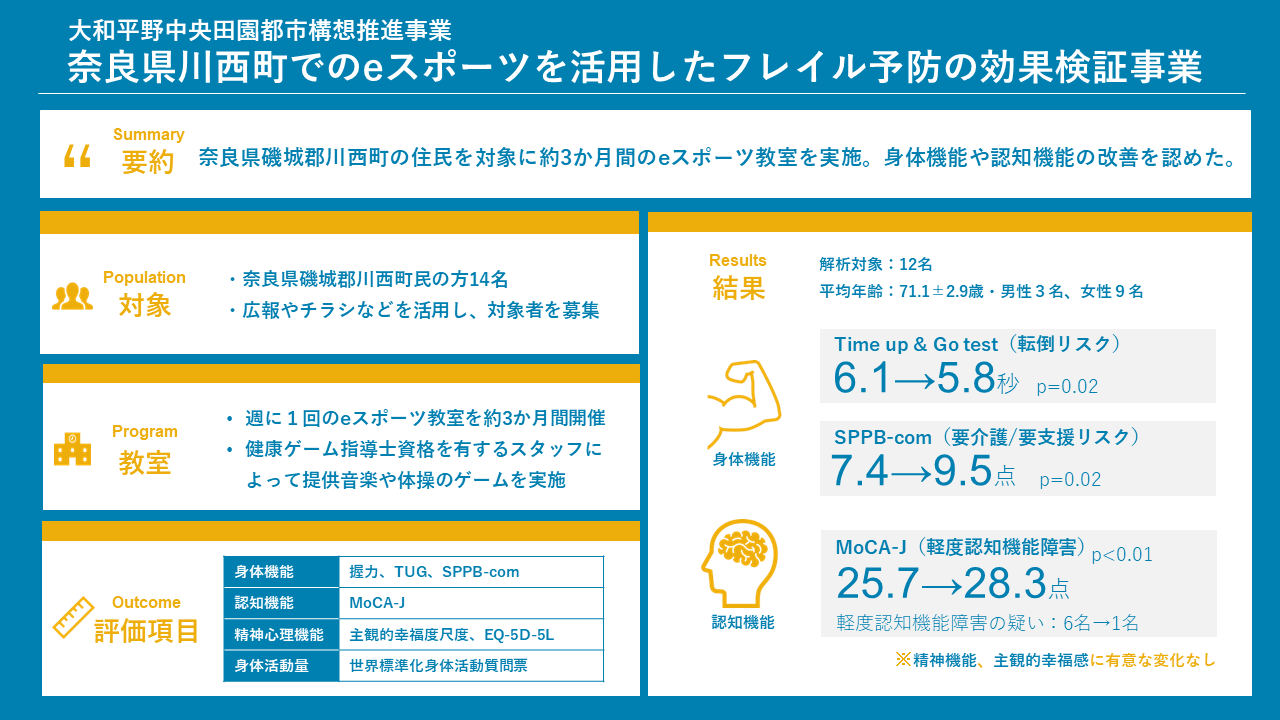 奈良県川西町でのeスポーツを活用したフレイル予防事業において事業評価結果を公表