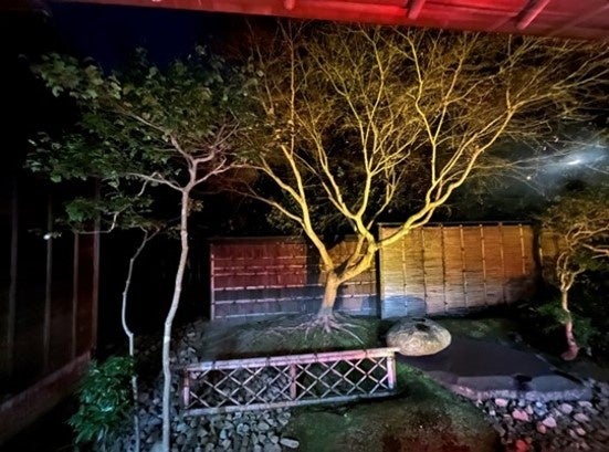 今回、三溪園で宿泊するお客様へ向けて、ライトアップにより幽玄な雰囲気を醸し出し、唯一無二の体験を提供しました。地域の文化財の活用と未来志向の先進技術を融合することで、横浜の新たな魅力を国内外に発信する活動に当社も参画しました。