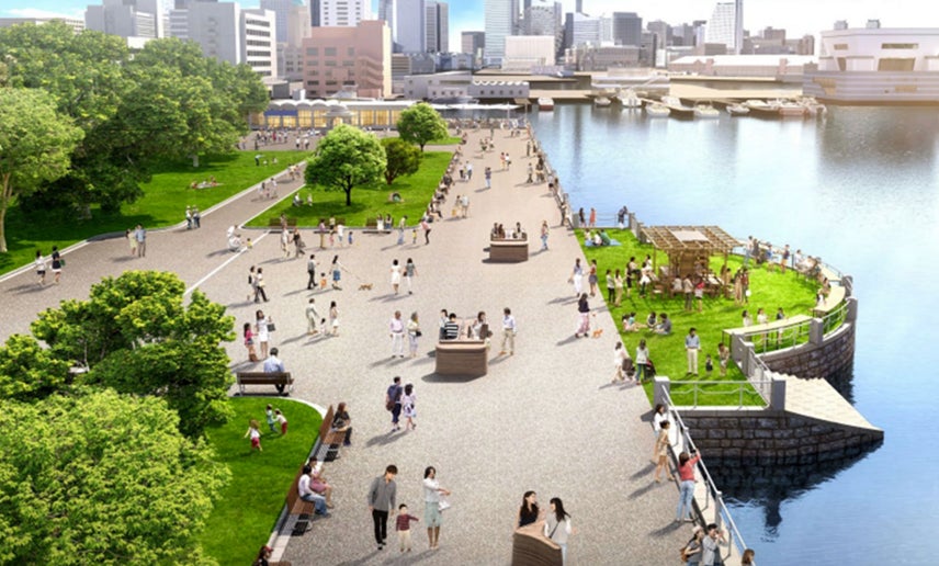 横浜都心臨海部における地域課題「まちの回遊性・滞留性・快適性の向上」の解決に向けて、横浜ならではの水際線の景色を眺めながら、多世代に 「移動そのもの」を楽しく感じていただく、時速5kmの歩行者共存型自動走行モビリティ(回遊性向上)と移動牽引型の滞在型空間創造「モバイルインフィル®」(滞留性・快適性向上)の社会実証。