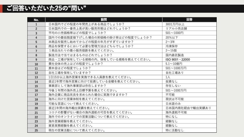ですが、現状日本にはゼロから海外への販路開拓を行えるだけの”具体的な情報”が存在しません。