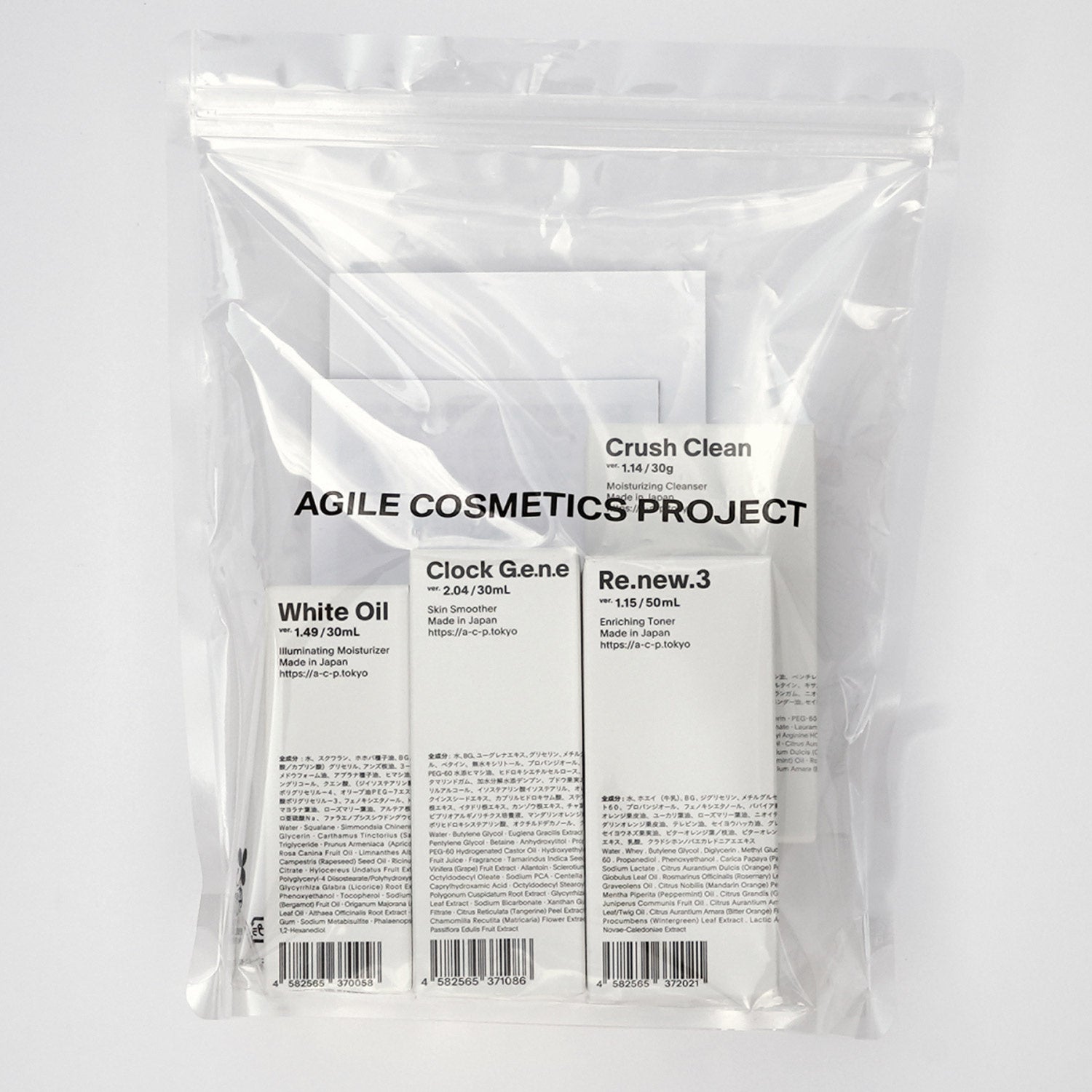 アジャイル コスメティクス プロジェクトは、イメージではなく効果を追求し、究極の肌を目指してあなたの肌をアップデートし続ける進化型のスキンケアプロジェクトです。豊富な有用性を持った天然成分を厳選し、シンプルで使いやすいのに、肌に確実な手応えをもたらすパワーアイテム設計で、お客さまの声を取り入れながら迅速(アジャイル)に、その時々のニーズに見合う形へとアップデートしています。