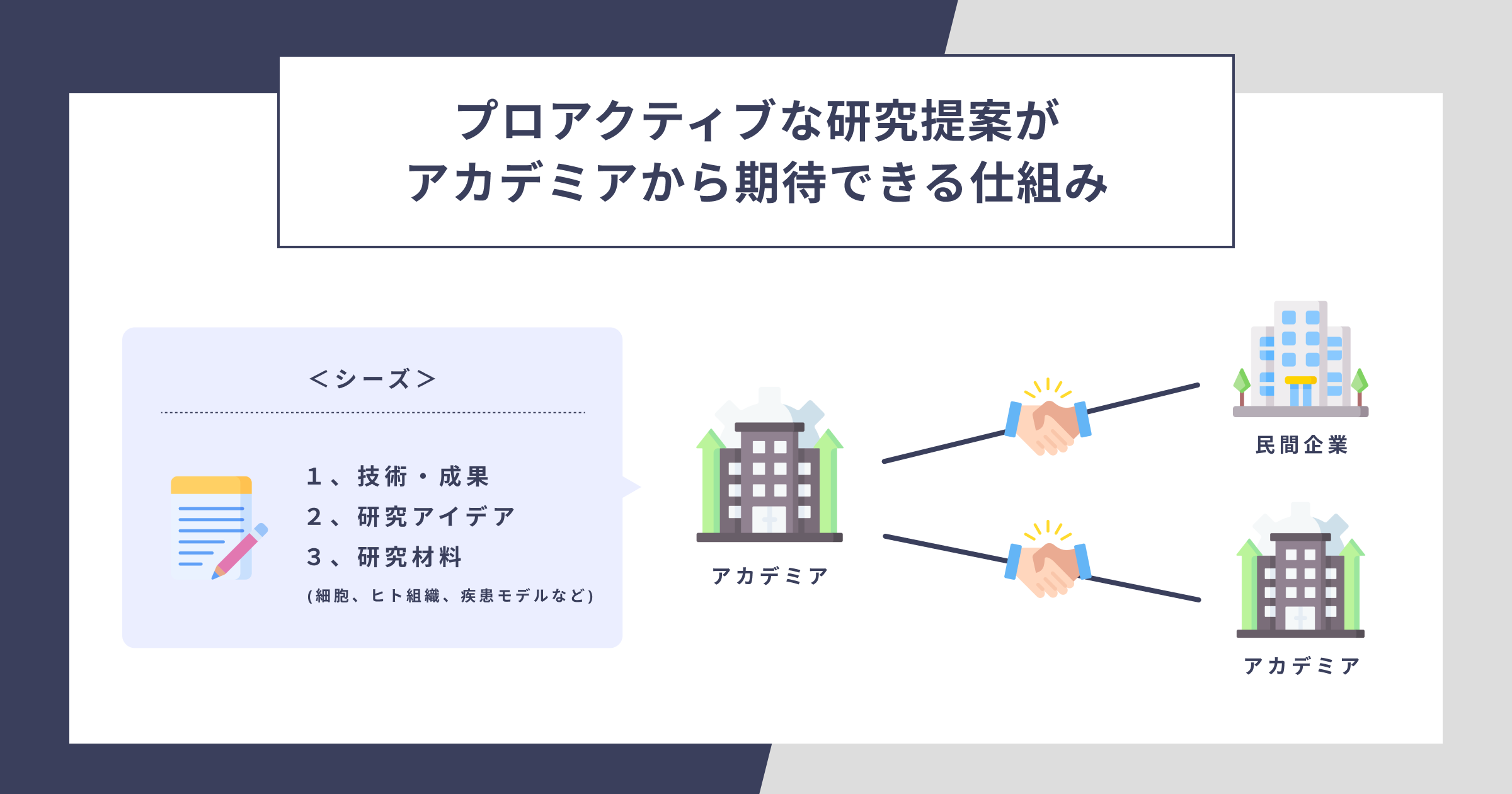 ライフサイエンスにおける日本の国際競争力の発展のためにはアカデミアにおける基礎研究力の向上が極めて重要ですが、現在、アカデミアの研究者は、ポジション獲得の困難さ、研究支援人材の不足や研究費獲得の不確実性といった数々の課題に直面しています。かかる状況下において、アカデミアの研究者同士のより強いネットワークの構築や産官との密接な連携が、こうした喫緊の課題解決につながるものと考えています。そのような場を産官学の全ての立場の方々に提供し、産官学連携を加速するための働きかけを活発に行うことで、より強いサイエンスをアカデミアから生み出し、それらを速やかに社会実装に向けて磨いていけるようなエコシステムの構築を目指したいと望み、Seeds-Hubの構想に至りました。