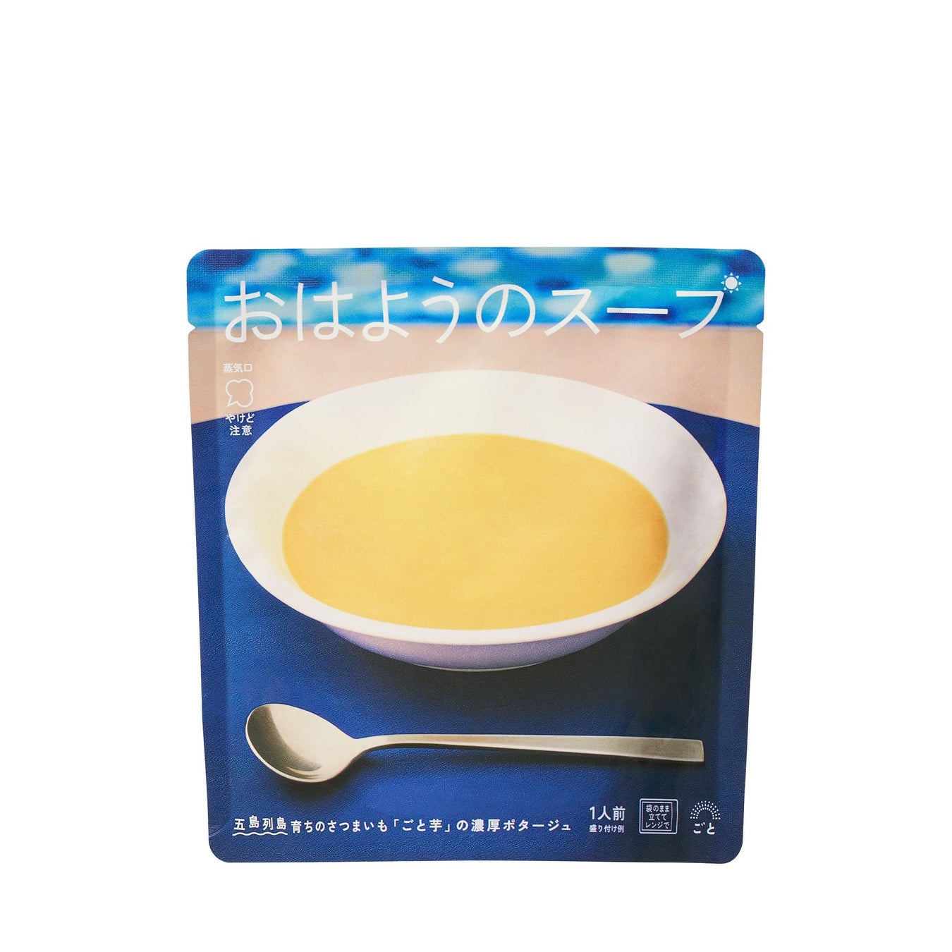 長崎・五島列島産の食材を使用した加工食品の製造販売を行う、ごと株式会社(所在地:長崎県五島市/代表取締役社長:木下 秀鷹)は、島内にある自社の畑と契約農家のみで栽培されるブランドさつまいも「ごと芋(品種 安納芋)」を使用した『おはようのスープ』が、令和4年度「長崎県特産品新作展」にて、最高賞となる県知事賞を受賞しました。