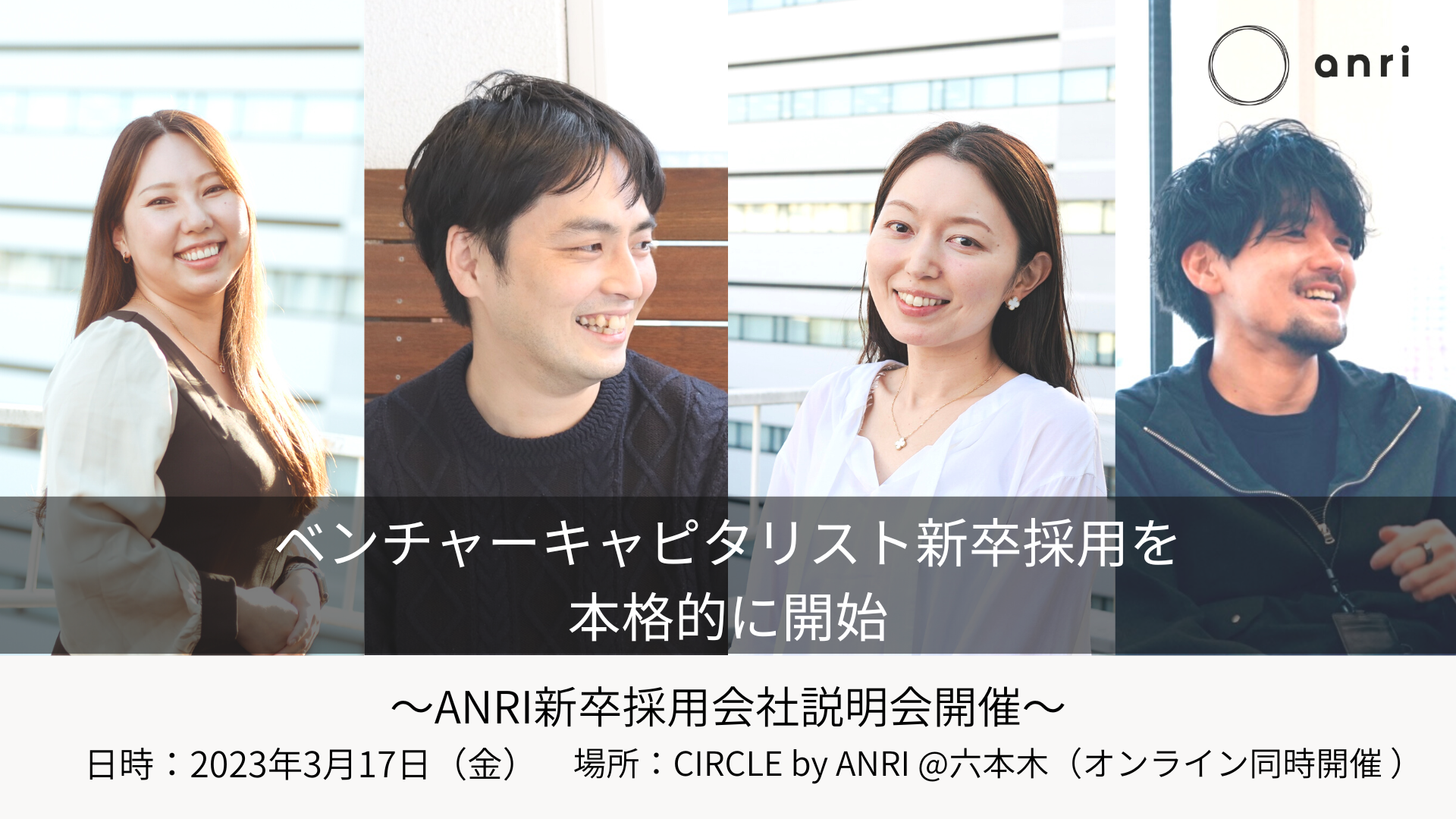 【ANRI】 ベンチャーキャピタリストの新卒採用を本格的に開始