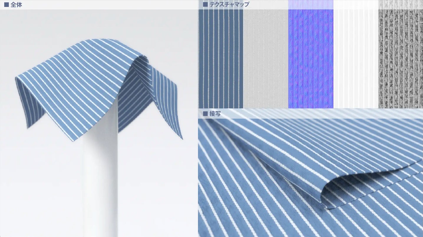 また今まで再現が難しかった生地の質感もデジタル生地データを使用することでリアルな3D制作が可能となってます。