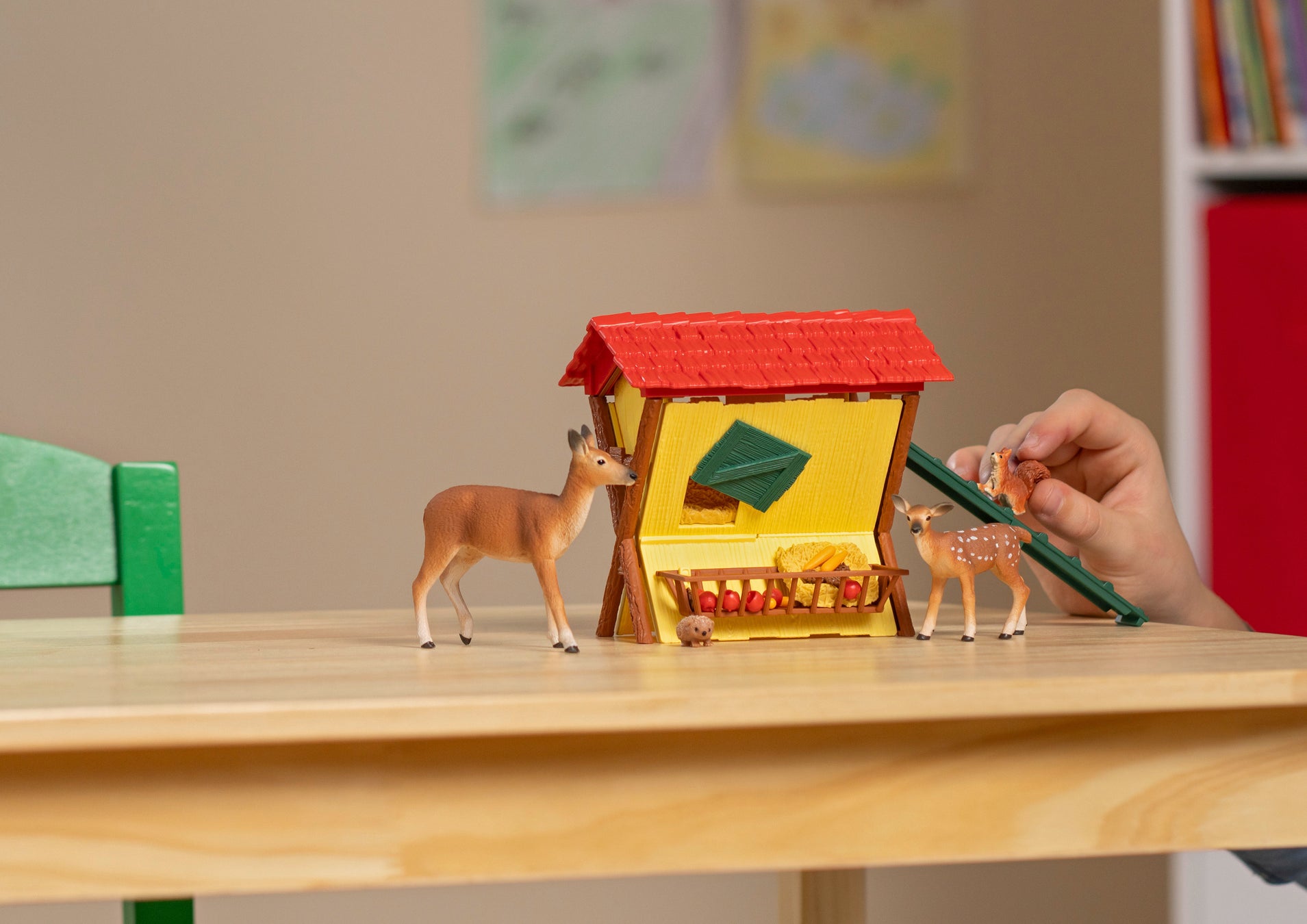 シカの親子、リス、ハリネズミと餌小屋、餌のパーツのセット