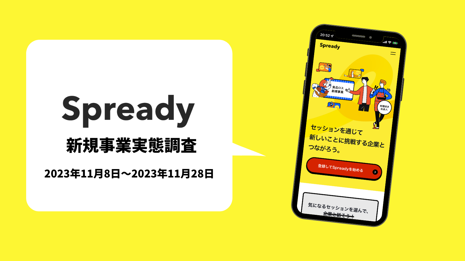 新規事業に出会えるプラットフォーム「Spready」を運営するSpready株式会社(本社:東京都港区、代表取締役社長:佐古雅亮、以下「当社」)は、企業の新規事業に関わる方を対象に、新規事業の実態や現在抱える課題などを調査する「Spready新規事業実態調査2023」を実施いたしました。86%の新規事業担当者が「ビジネスアイディアの発想に課題を感じている」、83.2%の新規事業担当者が「新規事業推進に当たり人材に課題を感じている」ことが明らかとなりました。