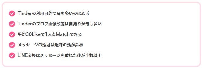Tinderでは30人にLikeを送れば1人とMatchできると半数以上が回答しています。