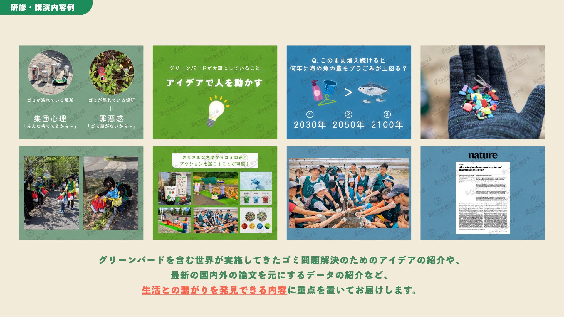 【NPO法人グリーンバード】企業の内定者研修等でご活用いただけるゴミ問題をテーマにした研修・講演サービスをスタート