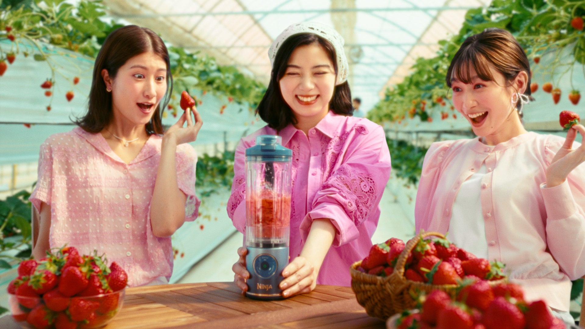 今回のCMでは、池田エライザさんが「Ninja Blast Max コードレスミキサー」を使って、その魅力をお伝えします。この新製品はコードレスなのにパワフルなので、いつでもどこでも使えるのが特徴です。池田さんが「Ninja Blast Max コードレスミキサー」とともにいちご農園や茶室に飛び出し、場所を選ばず自由にBlast Maxを楽しむ様子を描きます。仲間とアクティブに過ごしながら、その場で作ったフレッシュな一杯を味わう池田さんの姿を通して、いつでもどこでも楽しむことができ、製品を使う人の想像力を広げる「Ninja Blast Max コードレスミキサー」の自由自在さを表現しています。