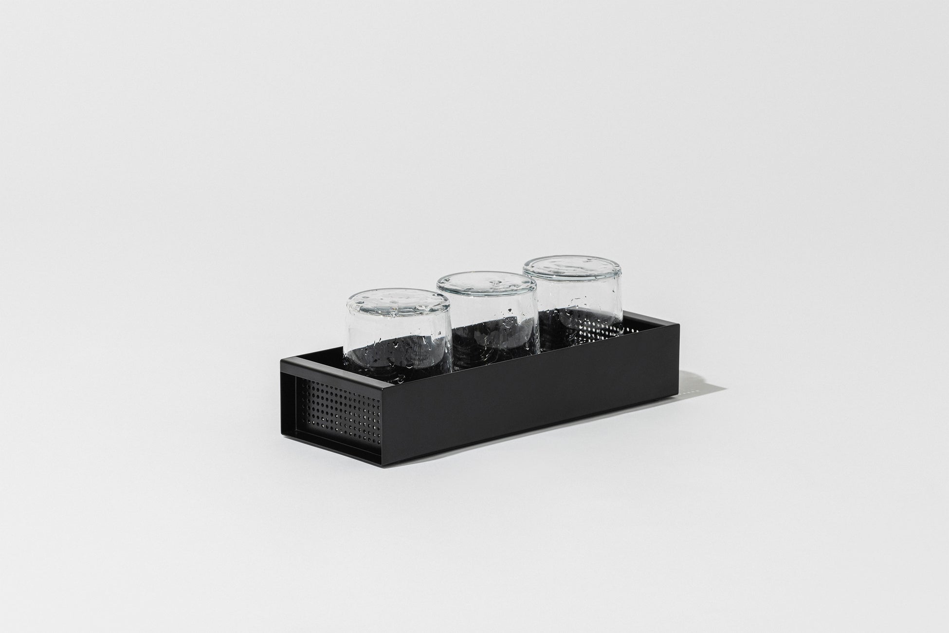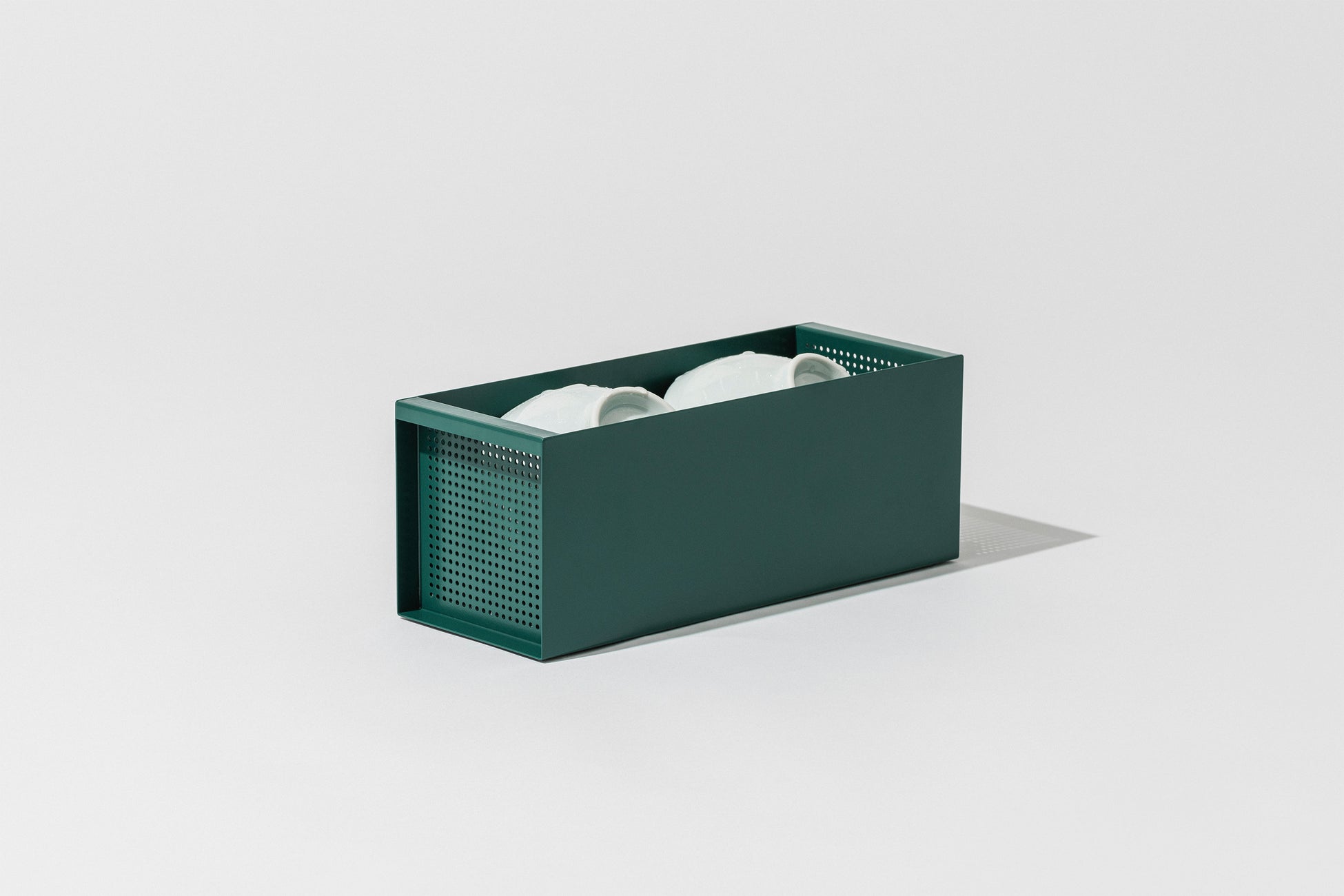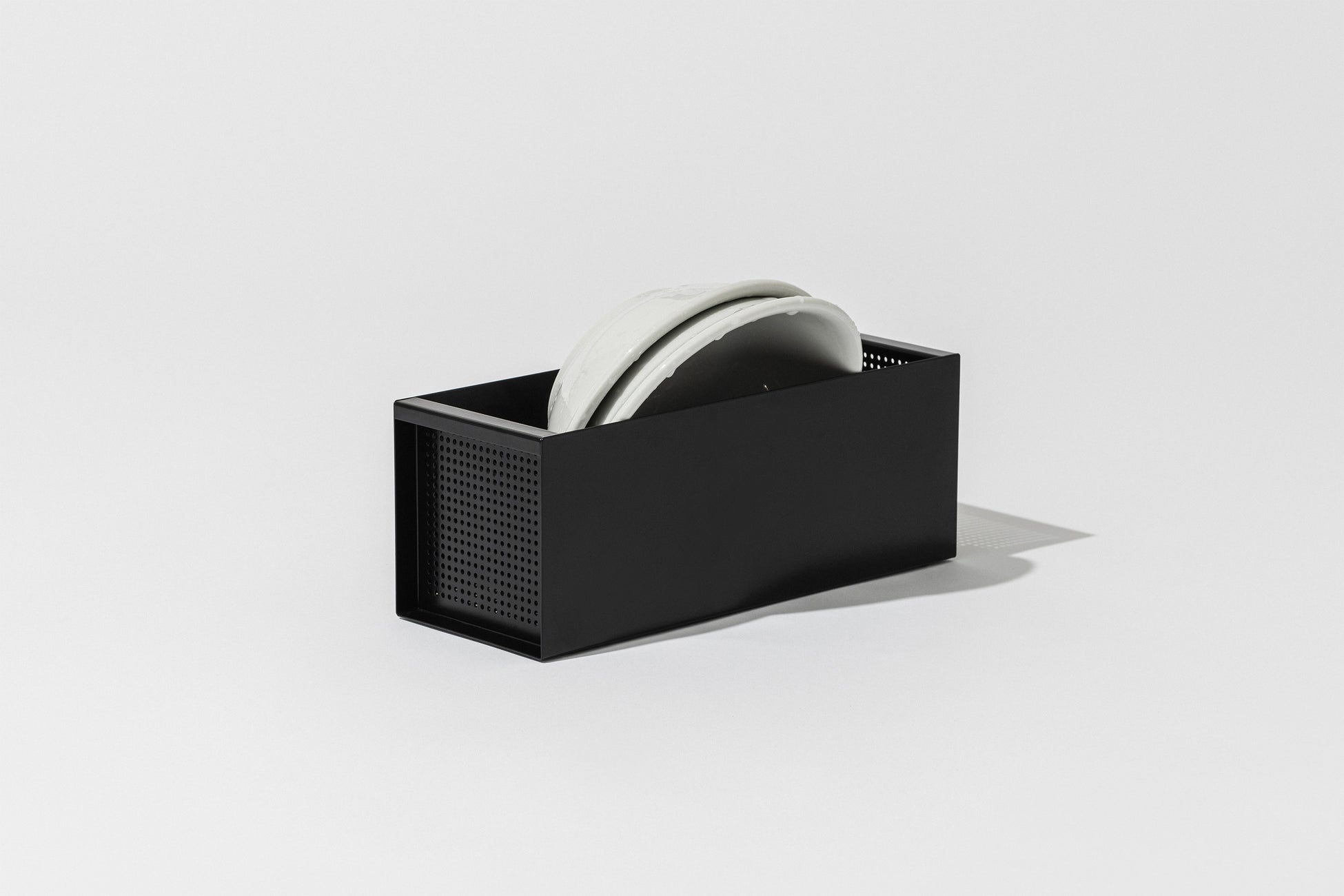 CARGOの設置面は110x290mmと非常にコンパクト。スリムで限られたスペースになることで、CARGOの中では食器が自然と整頓されます。また、コンテナのような箱型の見た目が食器を適度に隠すことで、水切り中でも生活感の少ない整った印象にしてくれます。