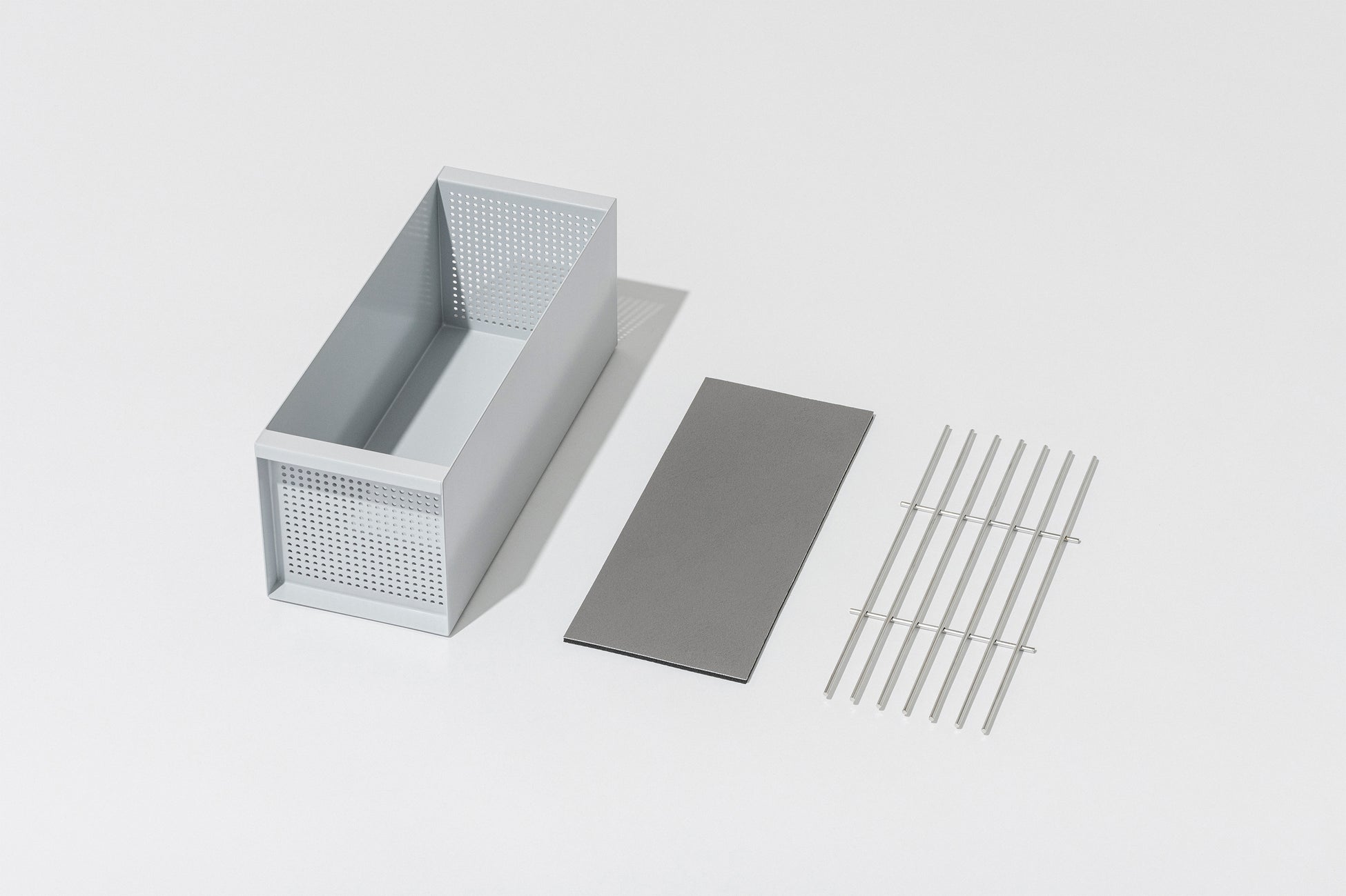 CARGO本体/吸水マット/ワイヤーネットは、独立した3パーツ構成。マットとネットは底に敷いているだけなのですぐに取り外すことができます。汚れが気になった時はそれぞれのパーツをさっと拭いて乾かすだけ。長く使い続けてもらうために、お手入れのことも考えました。