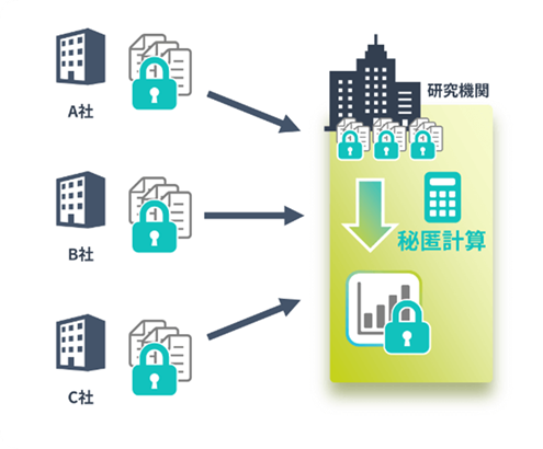 秘密計算技術を使えば、個々の企業の機密データの中身は隠したまま、データの加工・分析が可能になります。それにより、各企業はデータを提供できるようになり、その結果、業界全体の利益に繋がるアウトプットを得ることが可能となります。