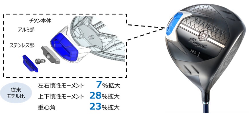 材質: (本体)軽比重チタン (ソール)タングステン合金 (フェイス)ZAT-158