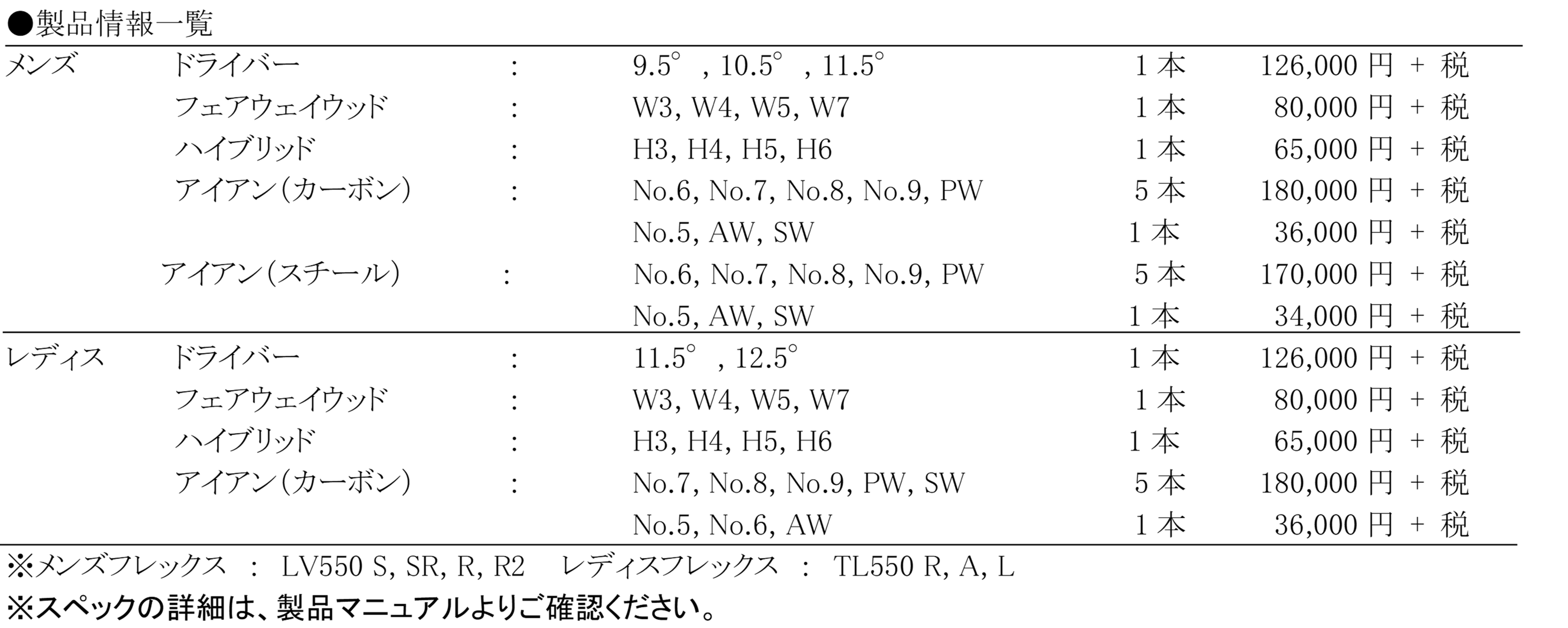 価格: メンズ カーボンセット(5本 6~9,PW)¥198,000(本体 ¥180,000) 単品 ¥39,600(本体 ¥36,000)