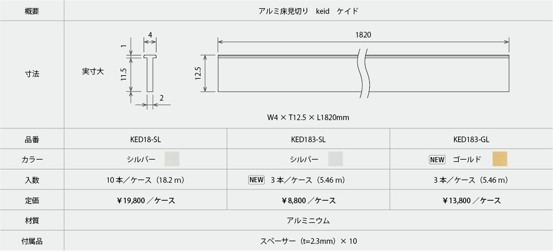 アルミ床見切り「keid」は発売以来、多くの方々にご愛用いただいております。このたび、お客様からご要望の多かったゴールド色が新たにラインナップに加わりました。