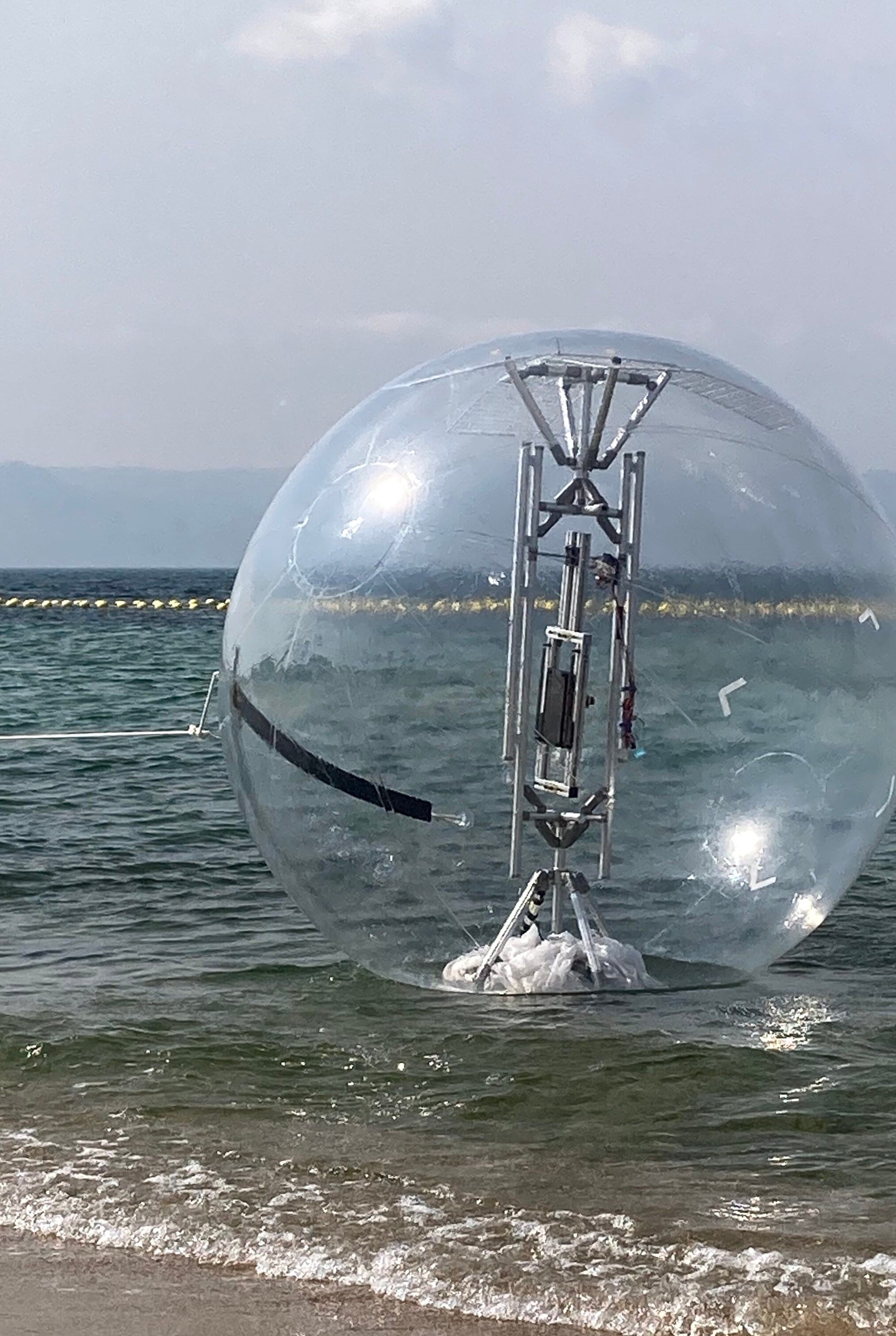 現在、原理試作による動作確認を終え、高さ約2mの実験機を用いて海洋での基礎研究を行っている最中です。これまでの研究開発では、高さ30cm程度の弱い波によるCO2の回収と水素生成の実効性が確認されています。今後はより長期間の実証実験を行い、システムの効率化、安定化を目指します。その後、十分な検証により実用性が担保された段階で、商用へと踏み切る予定です。