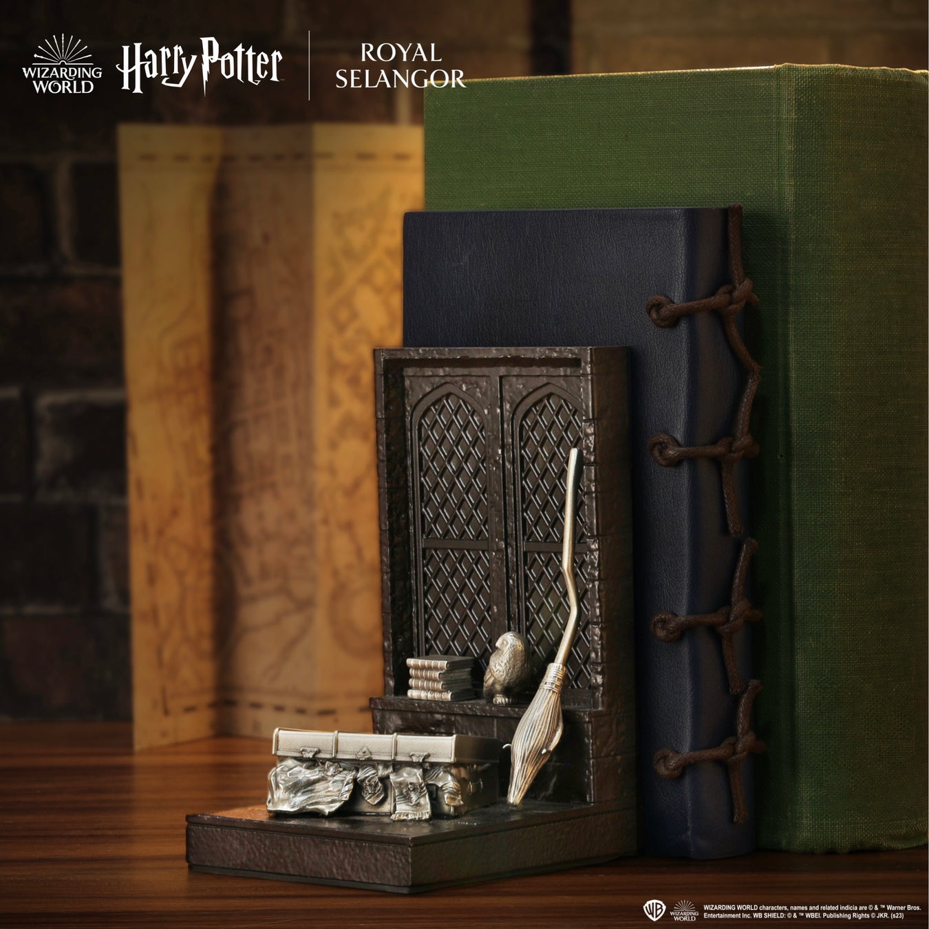 ロイヤルセランゴールHarry Potterコレクションにブックエンドが新たにラインナップ。トランクから溢れ出る荷物、教科書やフクロウ、Nimbus2000などグリフィンドール寮にあるハリーのロッカーをブックエンドとして表現しました。貴方だけの特別な空間を彩るブックエンドをお届けします。
