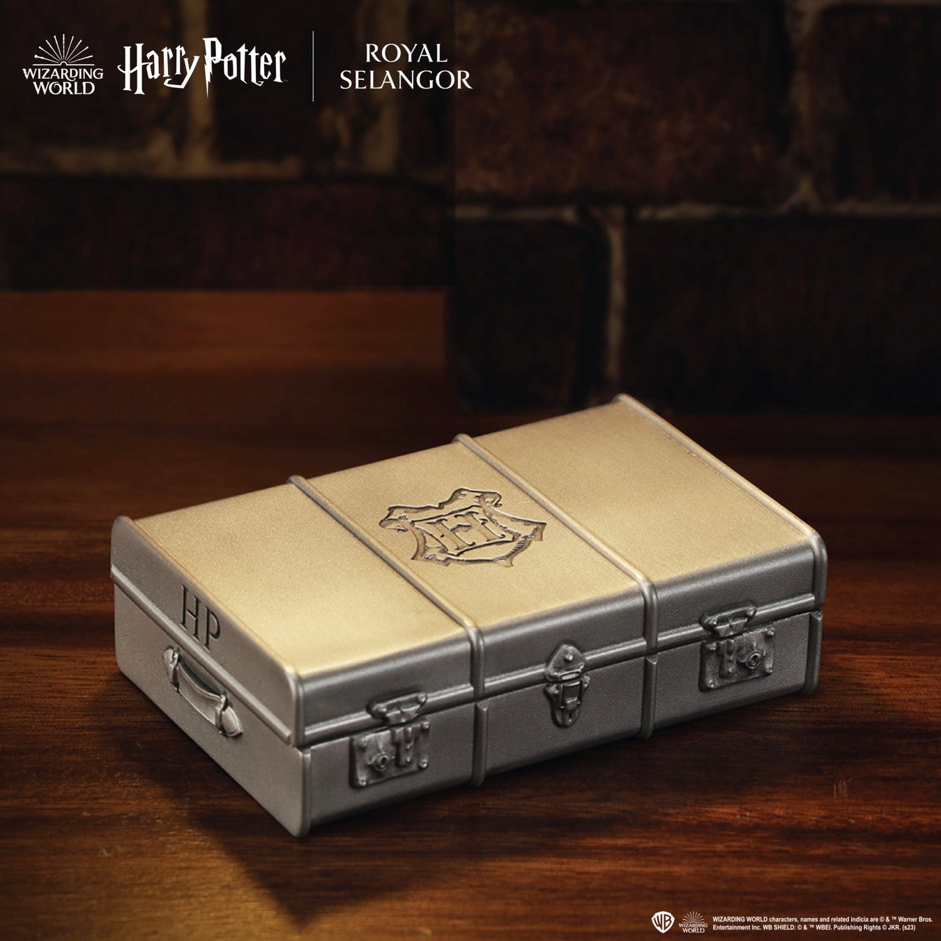 ロイヤルセランゴールHarry Potterコレクションに小物入れが新たにラインナップ。ハリー・ポッターが使用するスクールトランクをピューターの細やかな造形技術によって表現しました。トランクの中にはハリーの忘れ物も隠れている愛らしさ溢れるアイテムです。