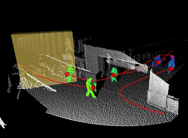 店舗や駅、オフィスなどの対象空間内の人をLiDARで検出し点群として出力し、人の動きや滞留人数、密集度を計測・集計・分析します。LiDARなら写真や映像を取得せずに正確に人の位置情報を計測できるため、プライバシーに配慮しながらリアルタイムの人流を高精度に把握して分析することができます。