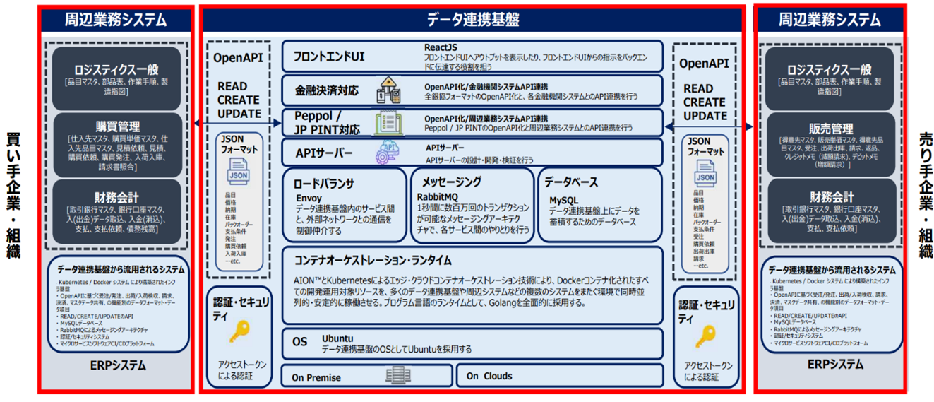 本事業において、ラトナでは、事業内容Aにあたる、受発注・請求・決済等の一連の取引プロセスのデジタル完結に係るシステムの開発・実証の委託を受け、業界・業種をまたいだ受発注・請求・決済の各取引について、データ規格、識別子等の標準案を策定し、コンテナオーケストレーション技術等を用いて汎用性および拡張性に富んだ信頼性の高いデータ連携基盤を開発します。また、同事業内容Aにあたる、業務システム(受発注・請求・決済業務ERP等)に対して、データ連携基盤とデータ交換可能となるようAPI連携等を行い、取引のデジタル完結が実現できることを実証し、その有効性を検証します。