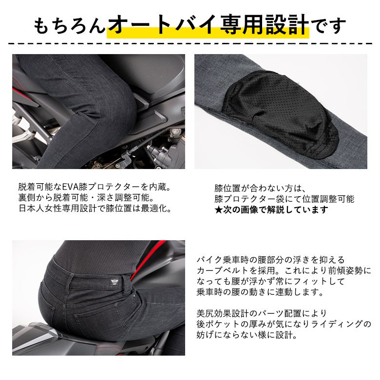 着用の快適性だけではなくブラックスキニーはオートバイ専用設計になっています。