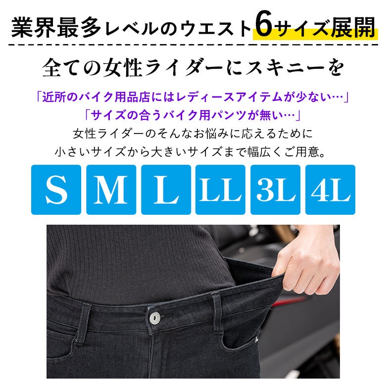 バイクアパレル業界最多レベル!選べる12サイズ展開のスキニー