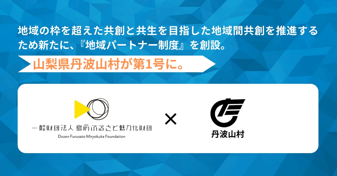 一般財団法人島前ふるさと魅力化財団(島根県隠岐島前)は、2024年11月より、地域の枠を超えた共創と共生を目指した地域間共創を推進するために、『地域パートナー制度』を創設し、第1号加入自治体として、2024年12月より山梨県丹波山村が地域パートナーに決定しました。