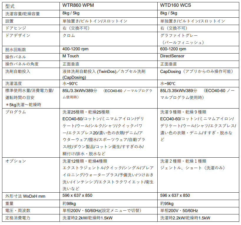 「WTD160 WCS」は、Mieleクオリティをそのままに、シンプルな機能のベーシックなモデルで、お求めやすい価格設定となっています。