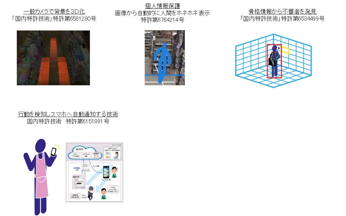 アースアイズは人の動きや行動を3Dで画像解析出来る特許を取得しています。またAI学習により人だけではなくモノを把握する技術も持っています。主に技術を小売店向けのロス対策(万引対策)に活用し実績を上げてきました。