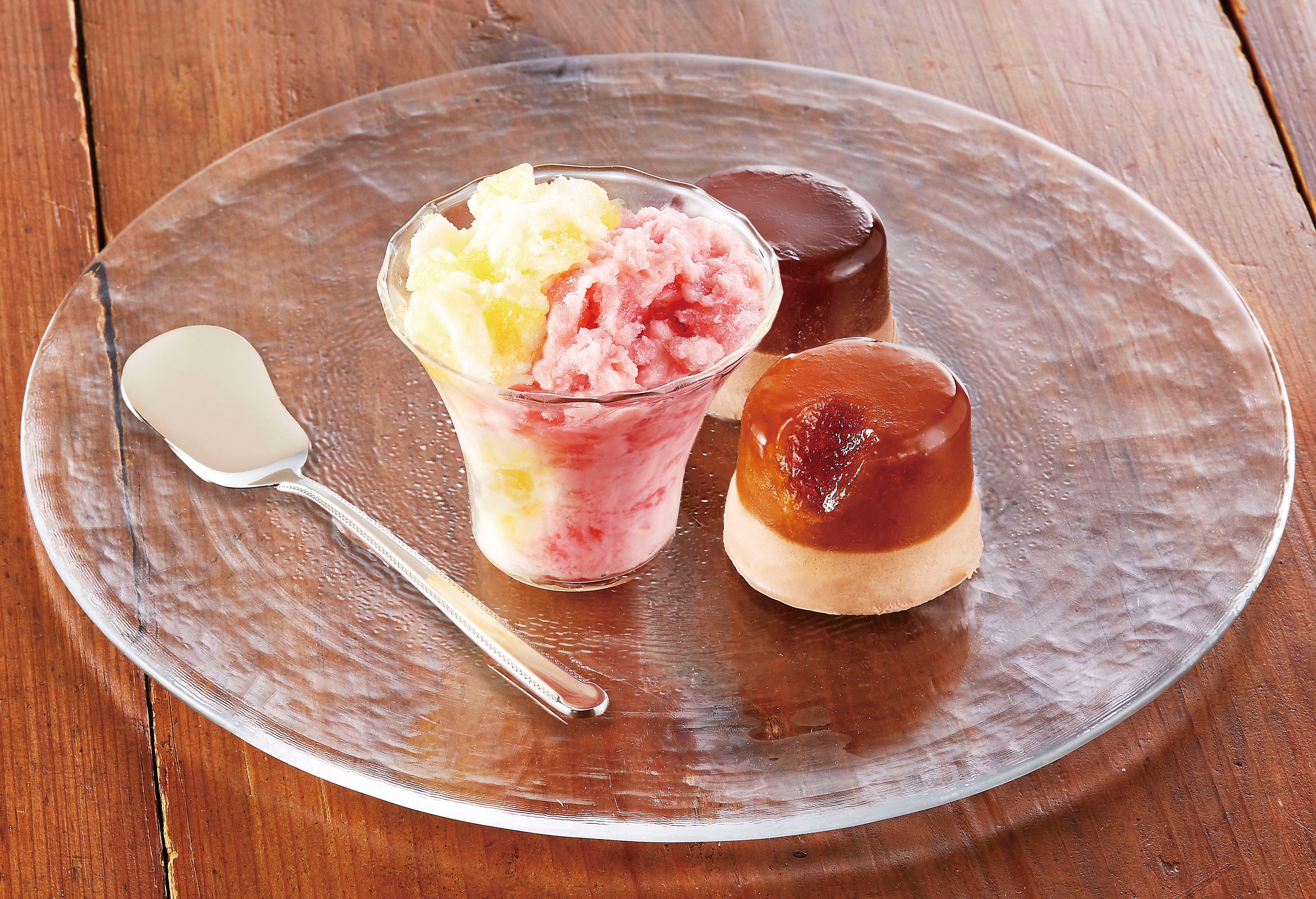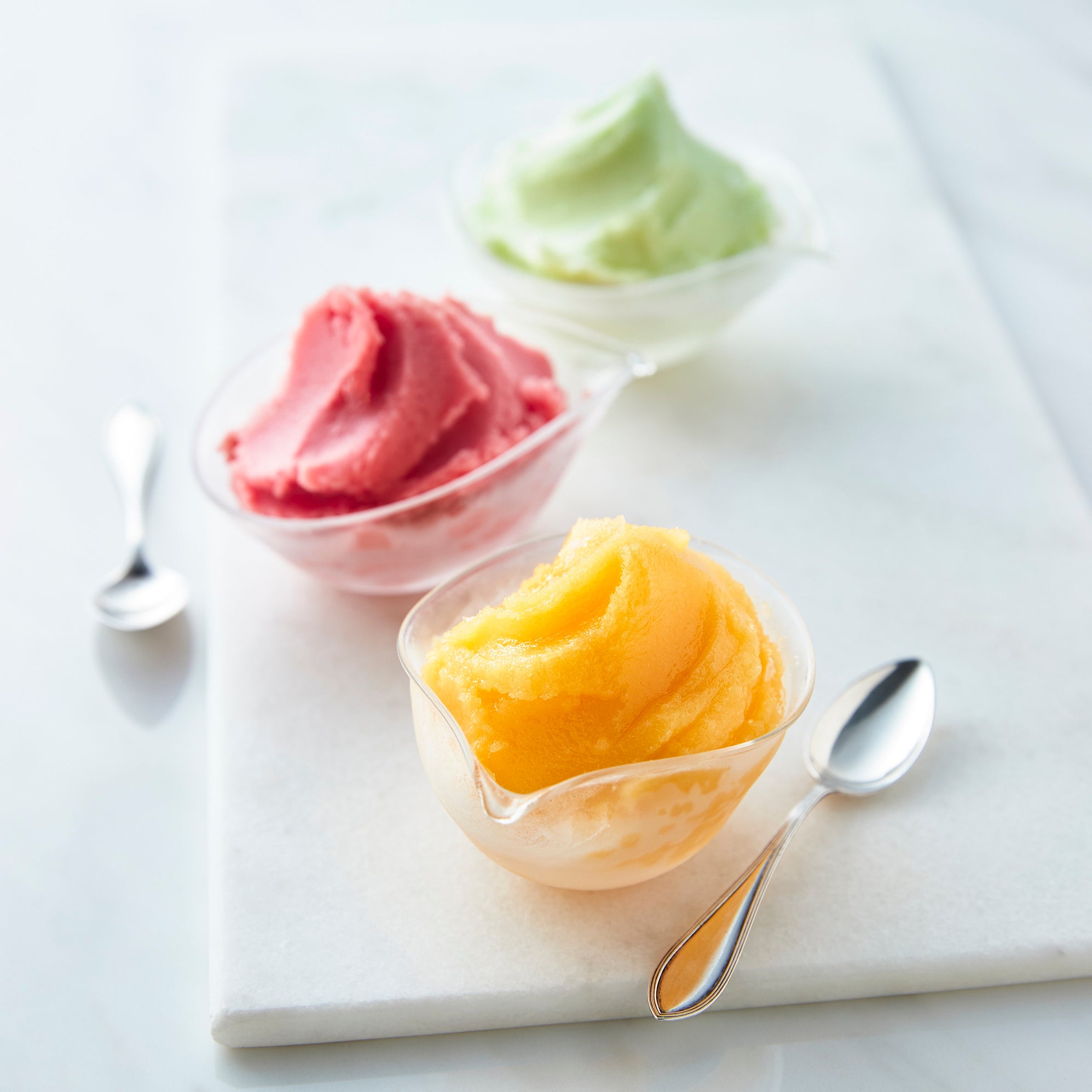 爽快感あふれる口どけとともに、ひんやりフルーティーな味と香りが広がるシャーベット。凍らせてからふわりと軽くなるまでスプーンでかき混ぜると、驚くほど繊細でなめらかな食感になります。全てのシャーベットに国産果実を使用し、味は不知火、北海道メロン、あまおういちご、清水白桃、柚子の5種類。