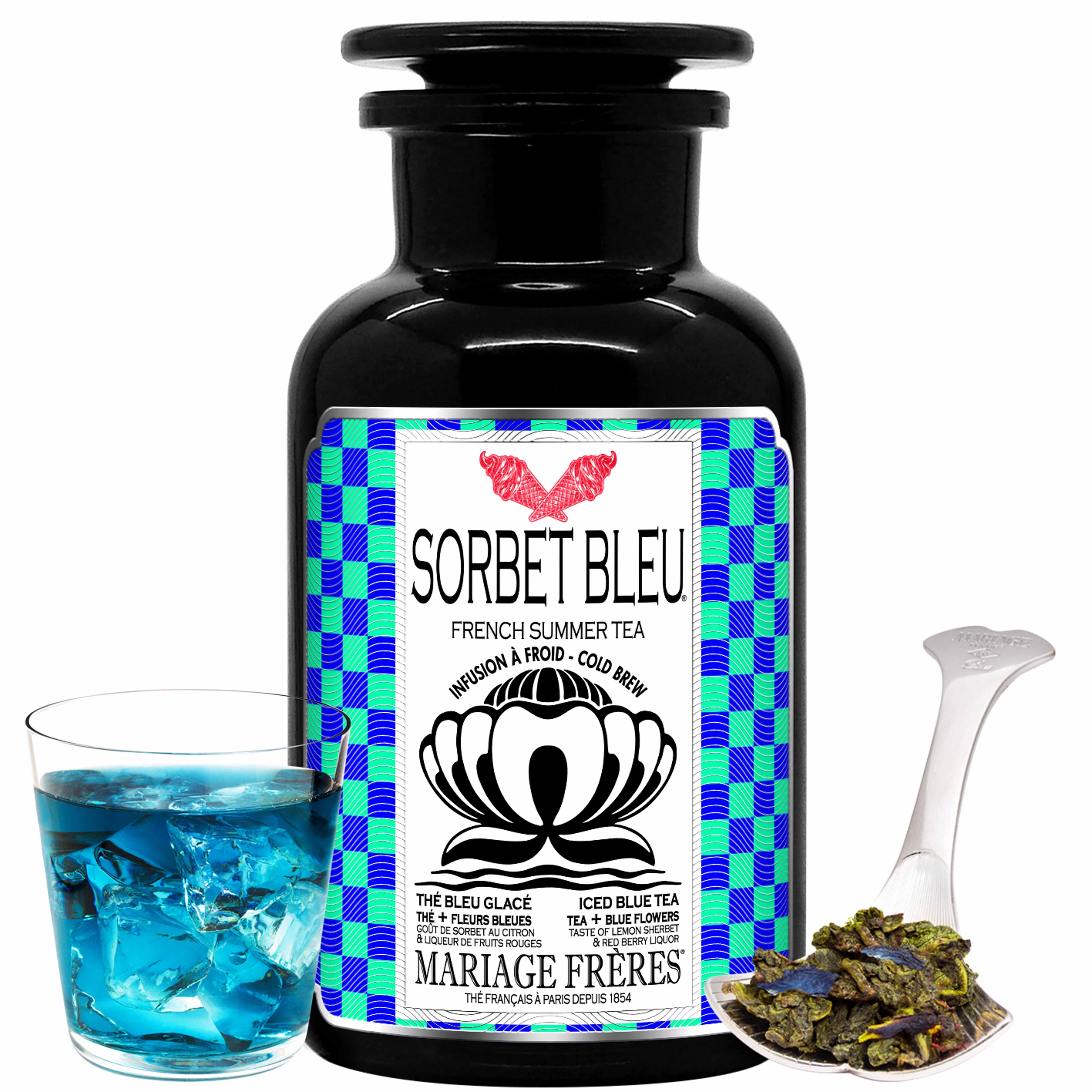 冷たいソルベを彷彿とさせる青茶の水だしで楽しめるフレンチアイスティー。夏の海のようなインディゴブルーの水色、レモンとフルーティーな香りが日常にヴァカンスのようなひとときをもたらしてくれます。淹れ方によって様々なブルーの色合いの変化も楽しめる、爽快感とレモンの酸味が心地よい夏にぴったりな味わいです。