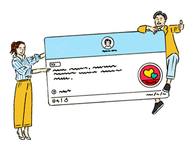 チームステッカーは、感謝と称賛を伝えるデジタルサンクスカードサービスです。Microsoft Teams と一体連携対応し、NECグループ様等、働き方改革先進企業にご導入いただいております。