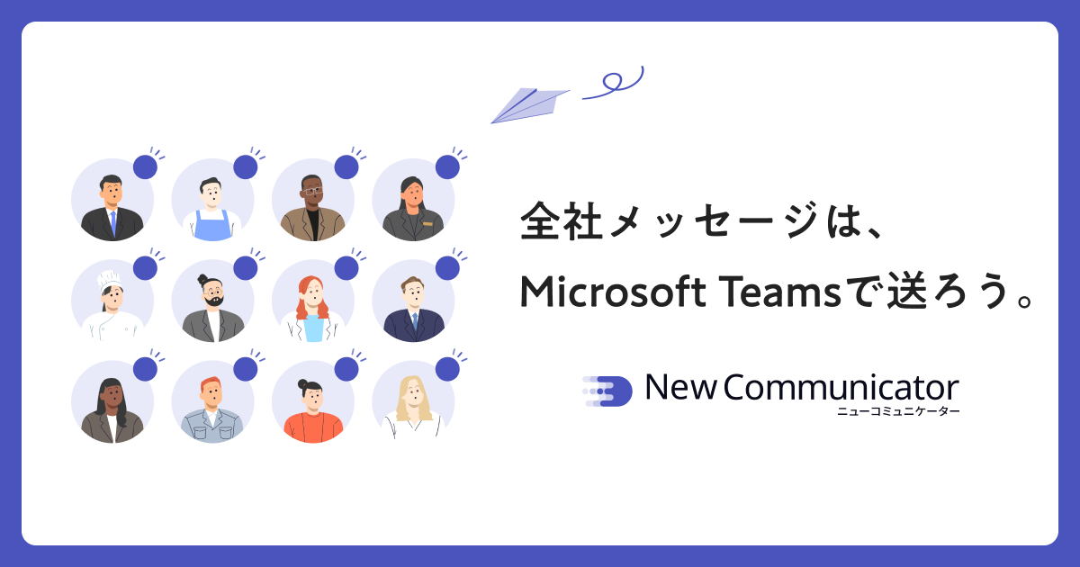 ニューコミュニケーターは、Teams に実装して欲しいという声が多かった「全従業員宛て一斉配信を、メンション通知付きで行う」ことができ、会社と従業員のエンゲージメントを強化する新しいコミュニケーションを実現するアドオンアプリです。