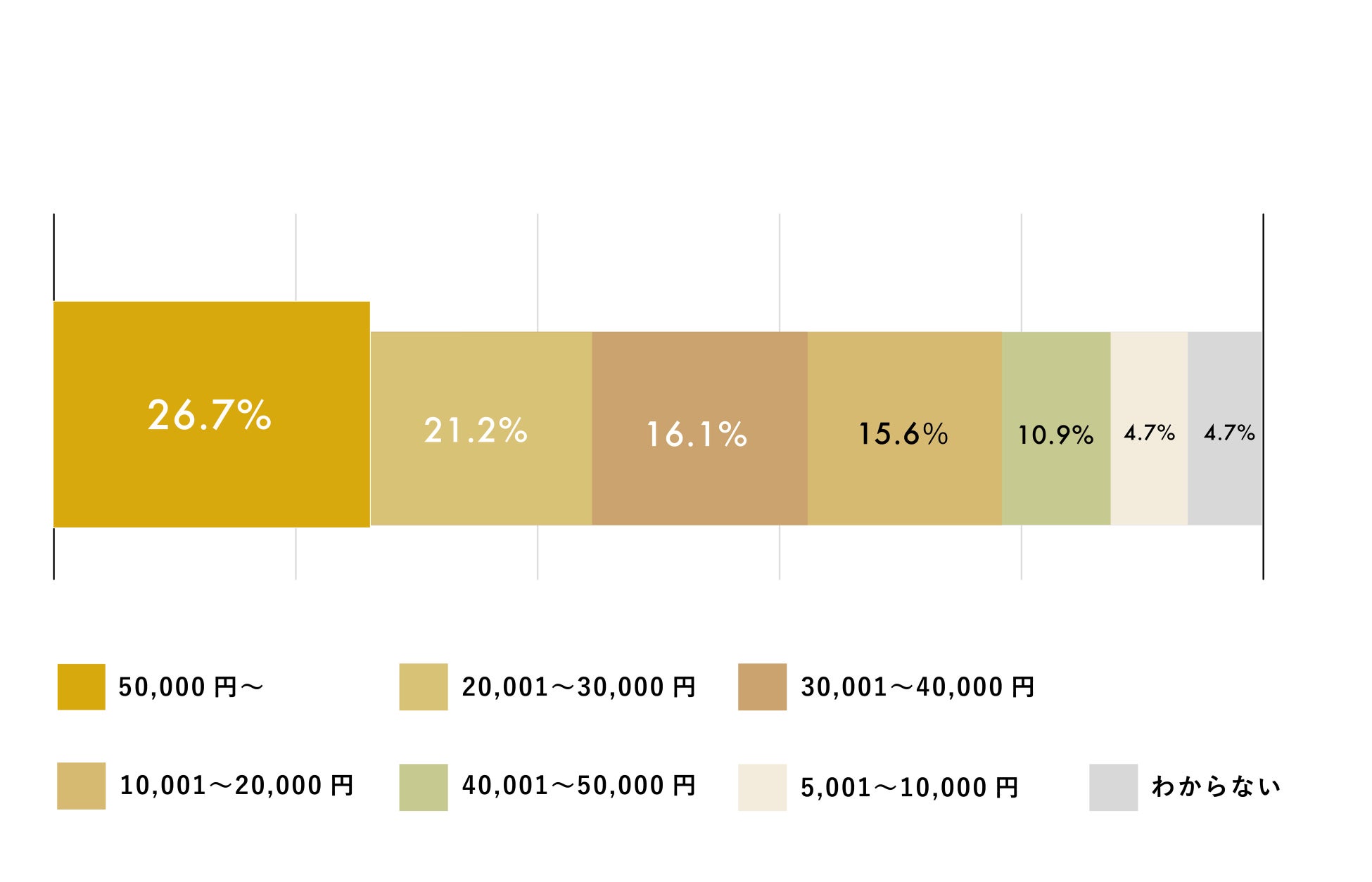 - ワクチンや健康診断などの病気予防費用は5万円以上が26.7%で最多。3万円以上が半分を占めている