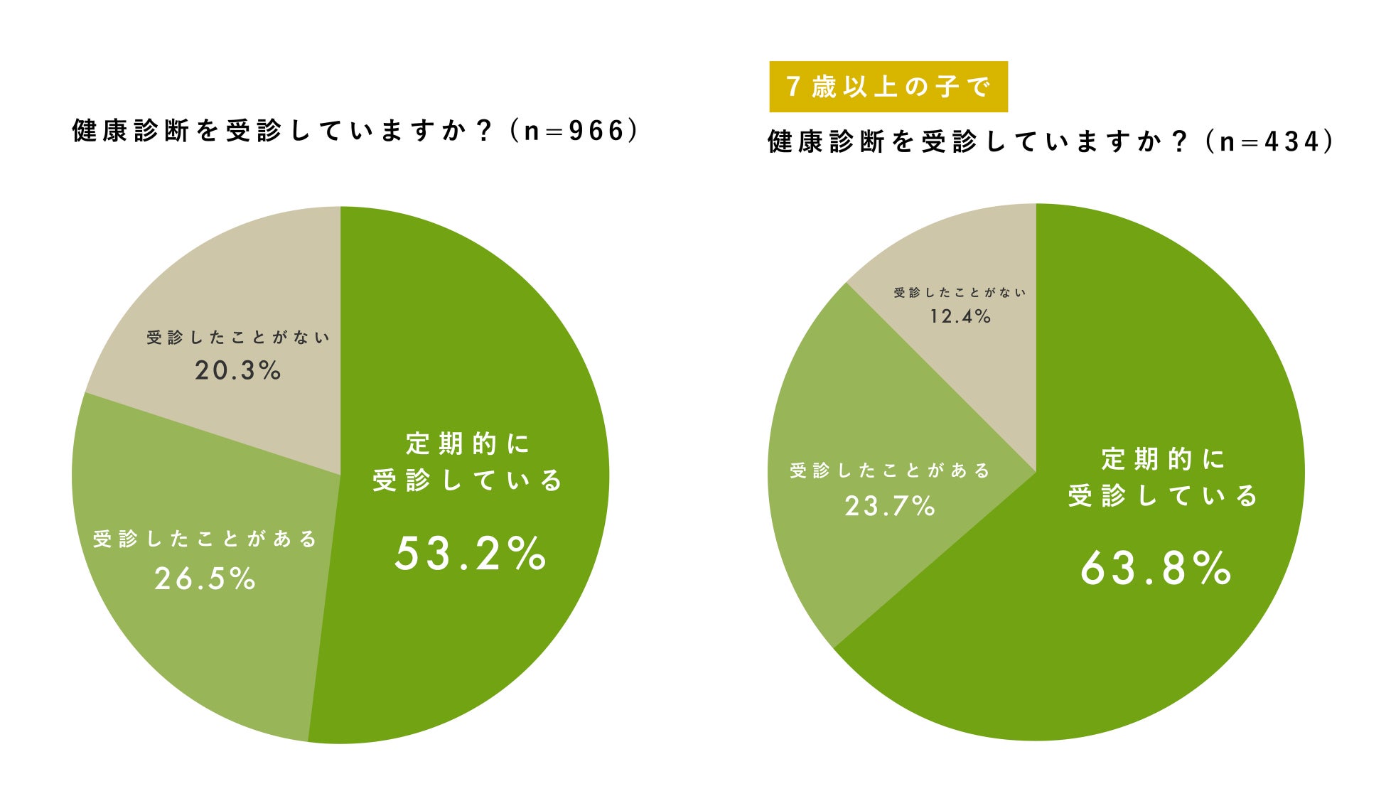 - 定期的に健康診断を受けている犬は53.2%、シニア犬の場合は63.8%