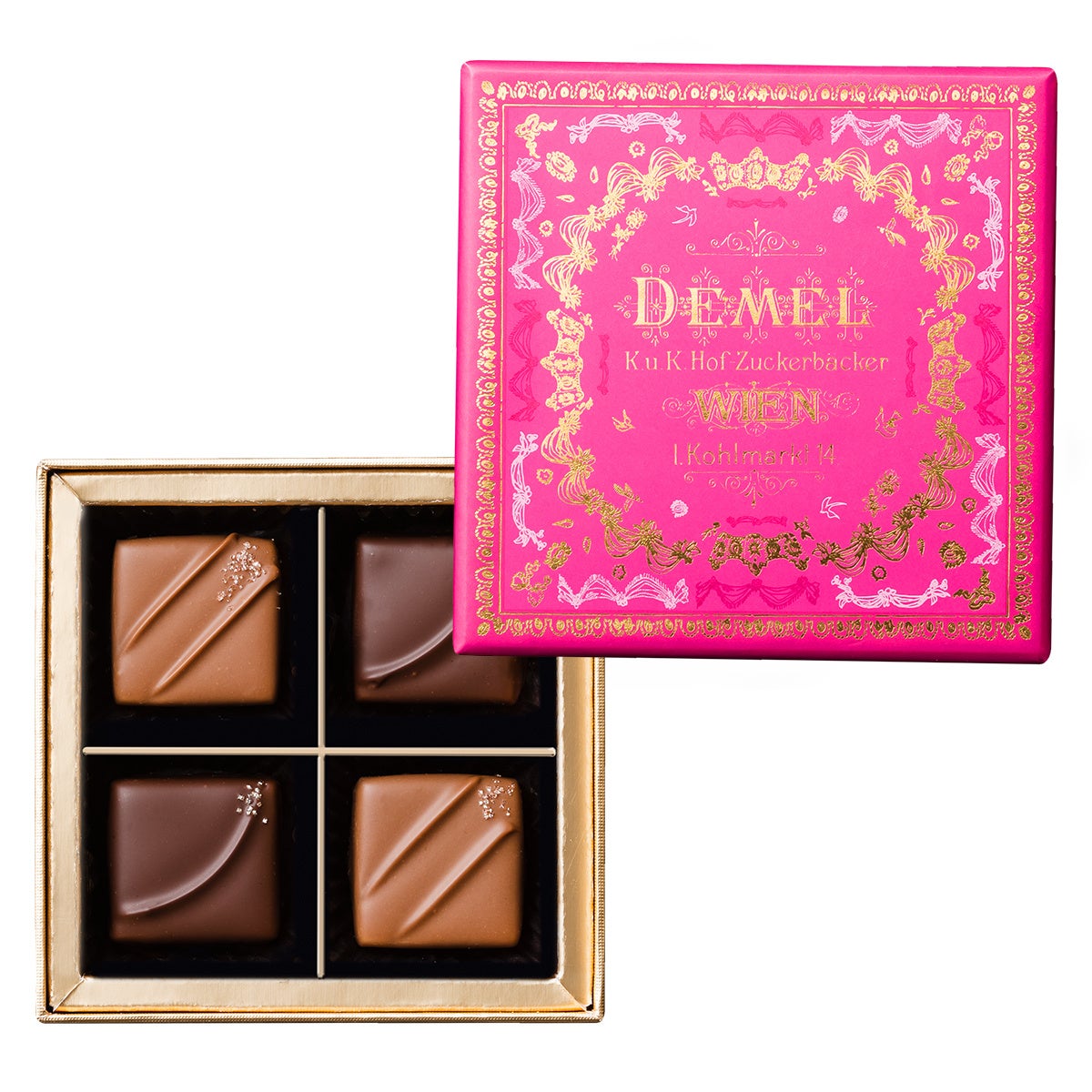 華麗なパッケージに包まれた限定アソートメント。デメルのチョコレートの美味しさを様々に楽しめる一品です。