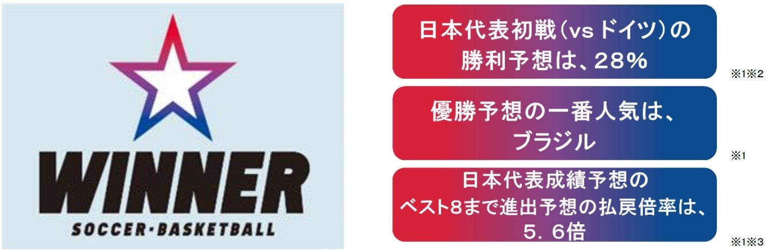 ※2 「WINNERサッカー1試合予想」のうち、日本代表が勝利する投票内容(No.1~No.7またはNo.8~No.14)に投票された割合の合計です。