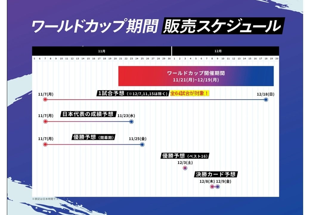 - ワールドカップを対象とした「toto」や「BIG」も販売中!