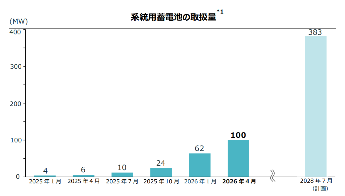 アグリゲーションサービス(運用受託)に加え、自社保有の系統用蓄電池についても2028年7月までの3年で100億円規模の投資を進め、当社グループの事業の柱の1つとしてまいります。