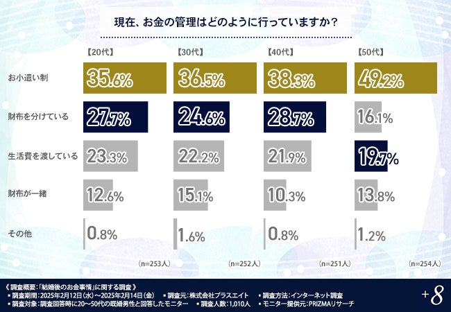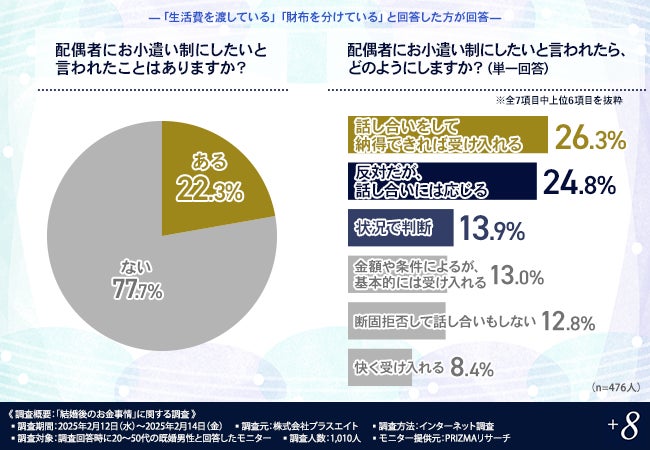 株式会社プラスエイト(所在地:東京都新宿区、代表取締役社長:佐々木 啓介)は、既婚男性を対象に、「結婚後のお金事情」に関する調査を実施しました。