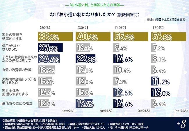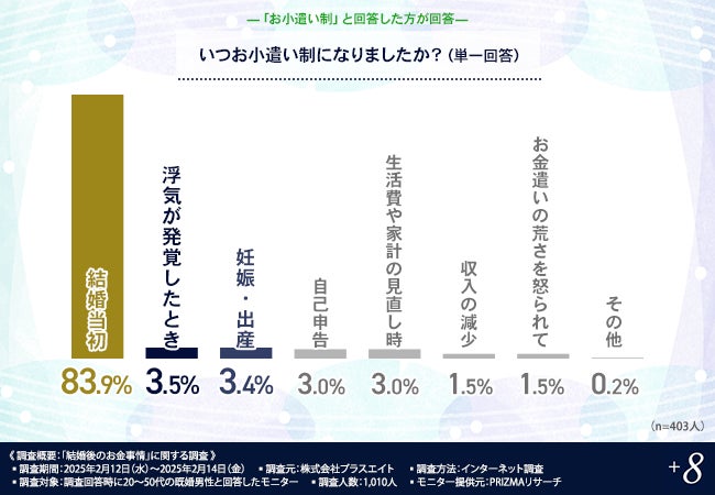 特に、20代では1割の男性が「浮気が発覚したとき」と回答しており、お小遣い制になった背景が垣間見える結果となりました。
